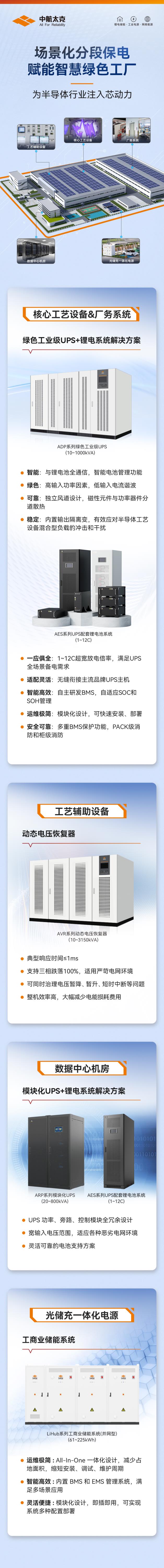 公司创新推出了ADP系列绿色工业级UPS(单机容量10-1000kVA,广泛应用于国内外头部半导体企业;AES系列UPS配套锂电池系统(1~12C放电倍率),满足UPS全场景备电需求,特别是针对半导体行业高功率短时间备电的场景,倾力打造8~12C高倍率UPS配套锂电池系统