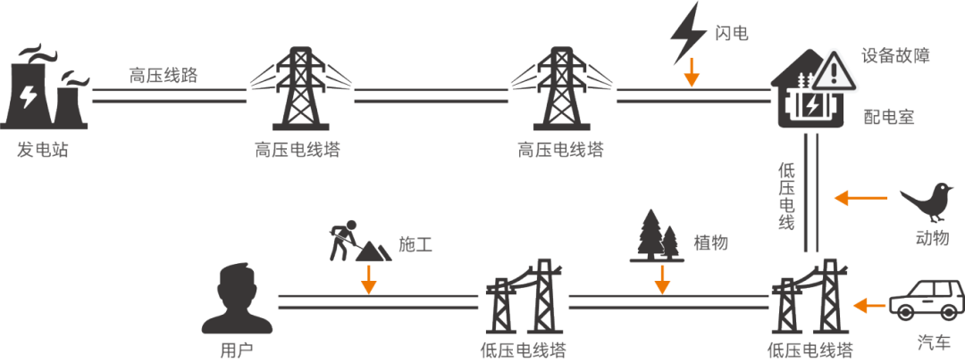 交通事故,建筑施工造成输电线路损坏和人员误操作等,产生电压暂降。