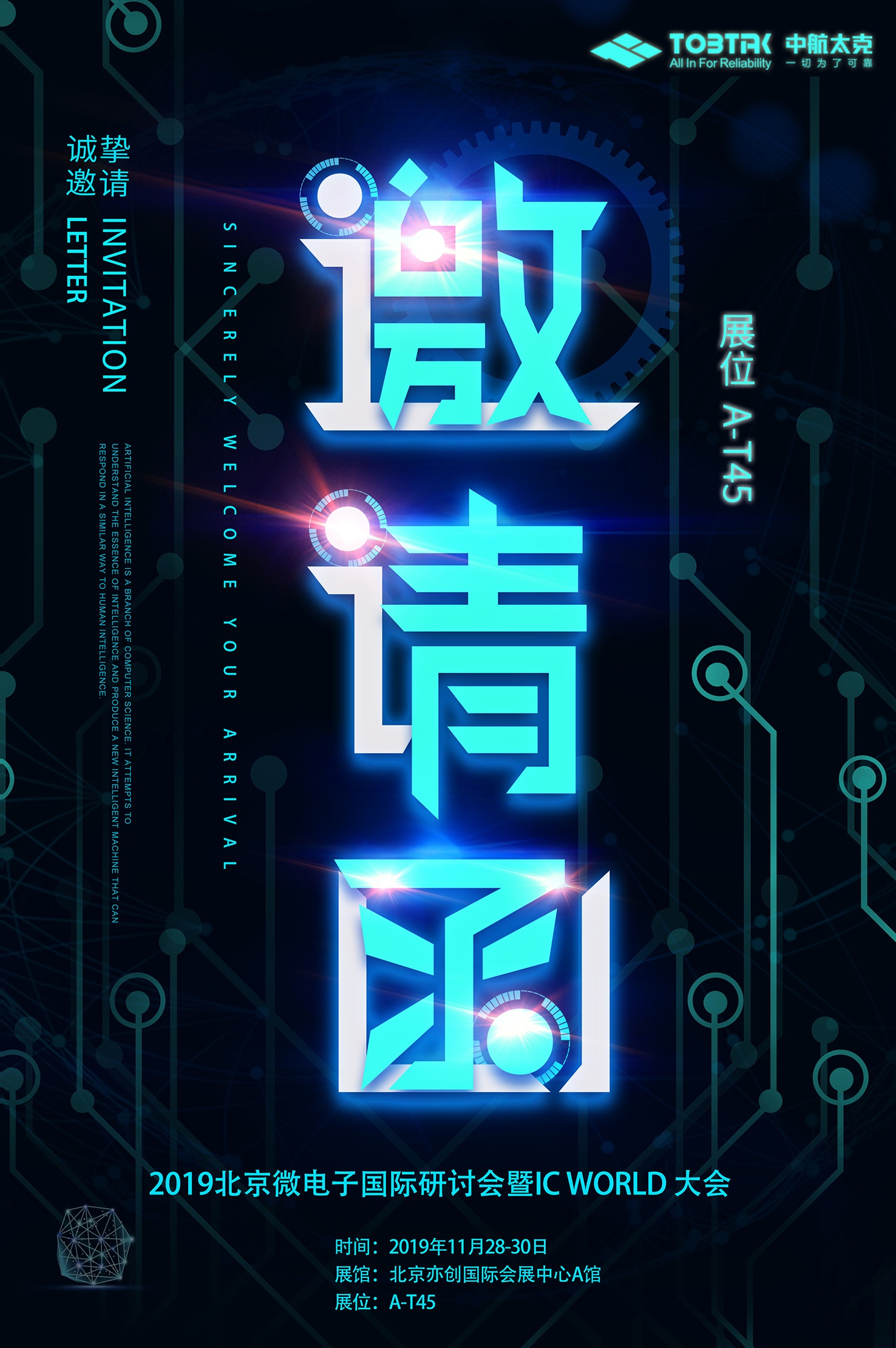 "2019 Beijing Microelectronics International Symposium and IC World Conference" will be held in Beijing Yichuang International Convention and Exhibition Center from November 28 to 30. This is a peak event for the display of the achievements of the integrated circuit industry chain and the learning and exchange of industry colleagues. AVIC Tec is invited to participate in the exhibition. Booth number is a-t45 in hall A. welcome to visit and guide!