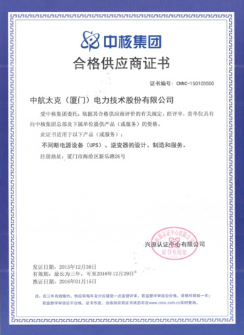 This time, through the qualified supplier review of CNNC group, it is once again proved that the company's various technologies and management levels meet the requirements of nuclear power product suppliers, and the company has the qualification and ability to provide UPS uninterruptible power supply and inverter to CNNC group, CGNPC group and their subordinate units.