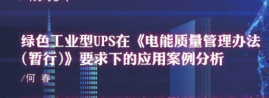 绿色工业型UPS在《电能质量管理办法(暂行)》要求下的应用案例分析